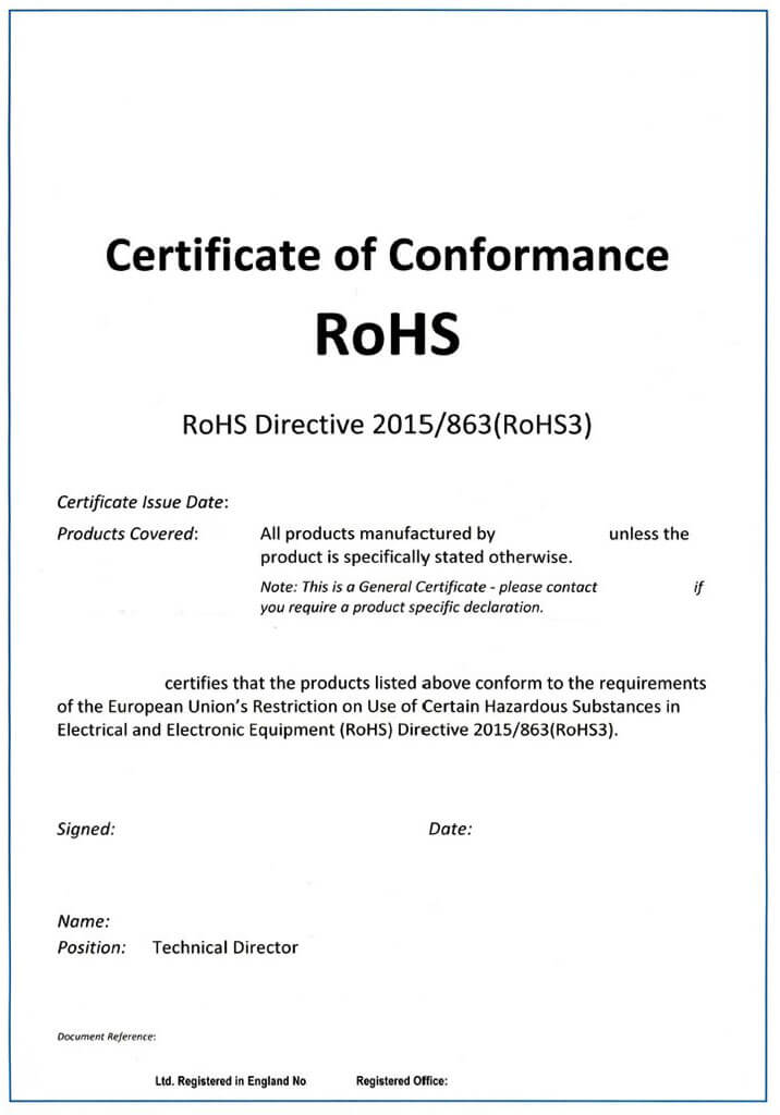 Please note that the RoHS regulations in Britain are slightly different from that in the EU. RoHS 3 introduced here is the EU standard.